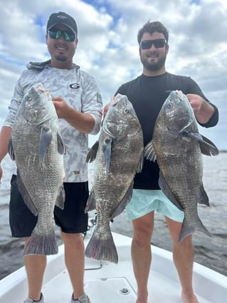 The 6-hour trip opens up more time to chase a wider range of species—think Cobia, amberjacks, King Mackerel, sheepsheads, flounder—and is perfect for those looking to fill the cooler. You can even break up the action with a stop for lunch at a private sandbar. Captain Roland knows the best spots to beach the boat and unwind before heading back to the fish.